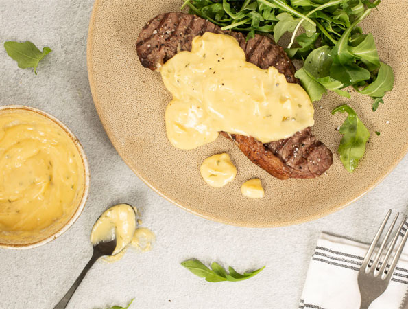 Bearnaise sauce is made from clarified butter emulsified in egg yolks, flavoured with herbs. It is traditionally served with steak and commonly prepared with the bain marie method. However, with Cooking Chef the method is made much simpler.