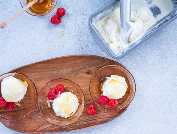 This simple ice cream is great along side sweet desserts or try on its own with fruit and honey.